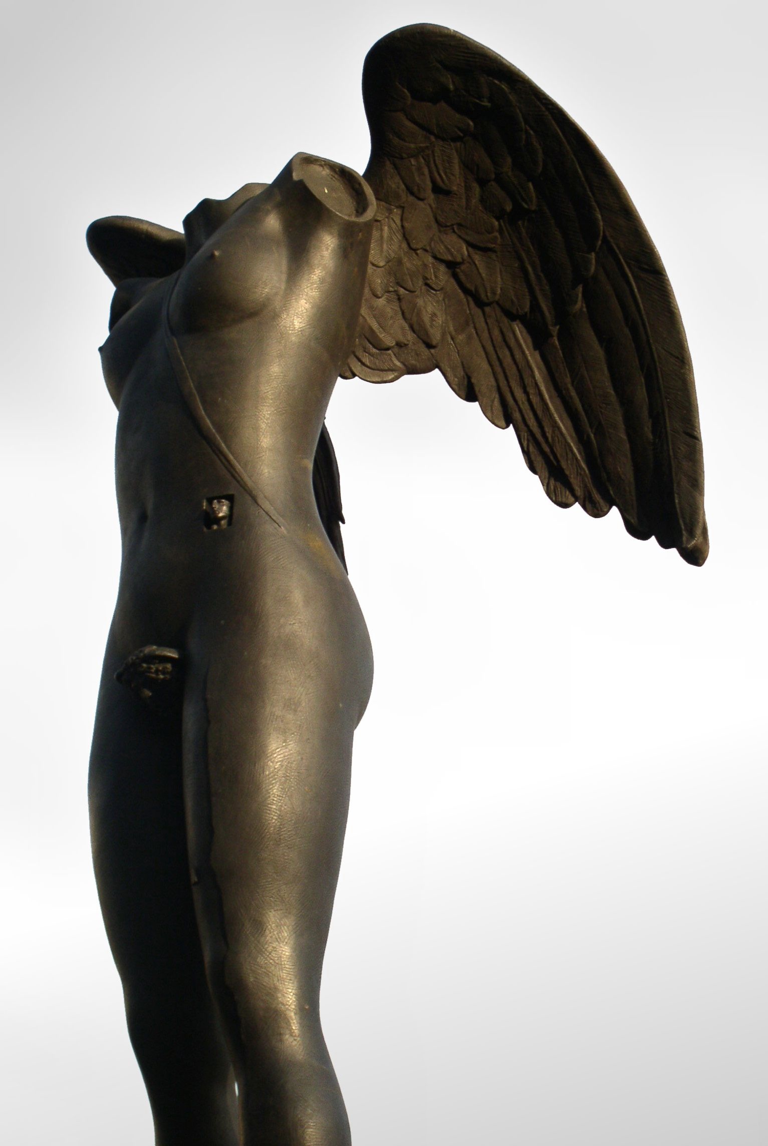 I had the fanciful notion that the inlay on the boxes was from something other than mother-of-pearl. Somehow or other the idea of angels having scaley wings (like butterflies) rather than being feathered (like birds) seemed right. From there came the idea of angels starting their existence as something ugly, like a grub or a maggot. (Angels are frightening things – they have no compassion, and an absolutist view of wrong and right. And no free will.) And it’s hard to write anything mythical about boxes without summoning Pandora. What if she didn’t loose misery onto the world? What if what she did was the last part of the myth only – released hope? Released an Angel?angel-sculpture-by-mitoraj