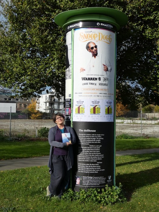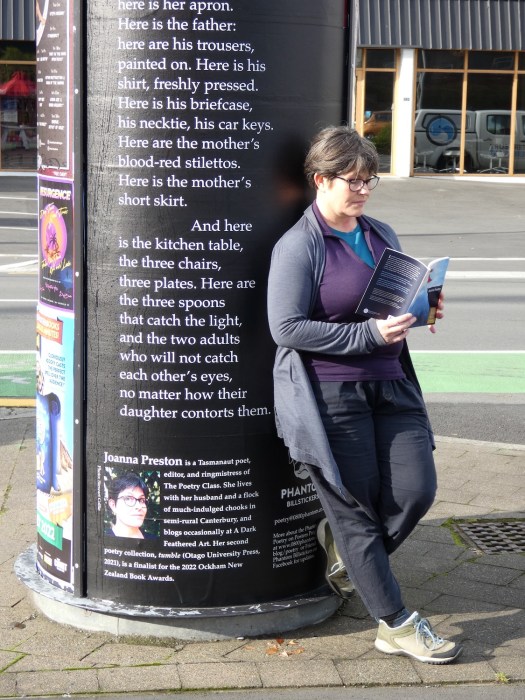The posters actually started going up a week ago, but I managed to come down with a cough and general malaise which meant I spent much of last week prodding my temporal lobe with a swab and staring worriedly at a succession of RAT tests. (All negative.) But yesterday I was released from my confinement and went on a cruise around town to try and photograph as many of them as I could find, using the handy link that Mindi from Phantom Billstickers had sent me – currently there are seven in Wellington, nine in Christchurch, two in Auckland, two in Dunedin, two in Nelson, and four in Hamilton (click the link to see where they are).