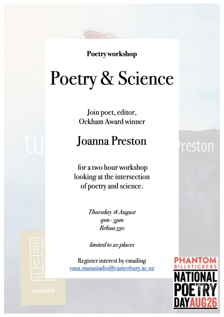 I would just love to come to this workshop, it is my Thing, science and poetry, but I am not only booked for a 12-2:30 lunch but it’s at my house, so I can’t possibly wiggle out of it.